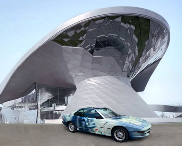 Druckgrafik im weitesten Sinne. Der ohnehin schon wertvolle BMW-Oldtimer 850 CSi